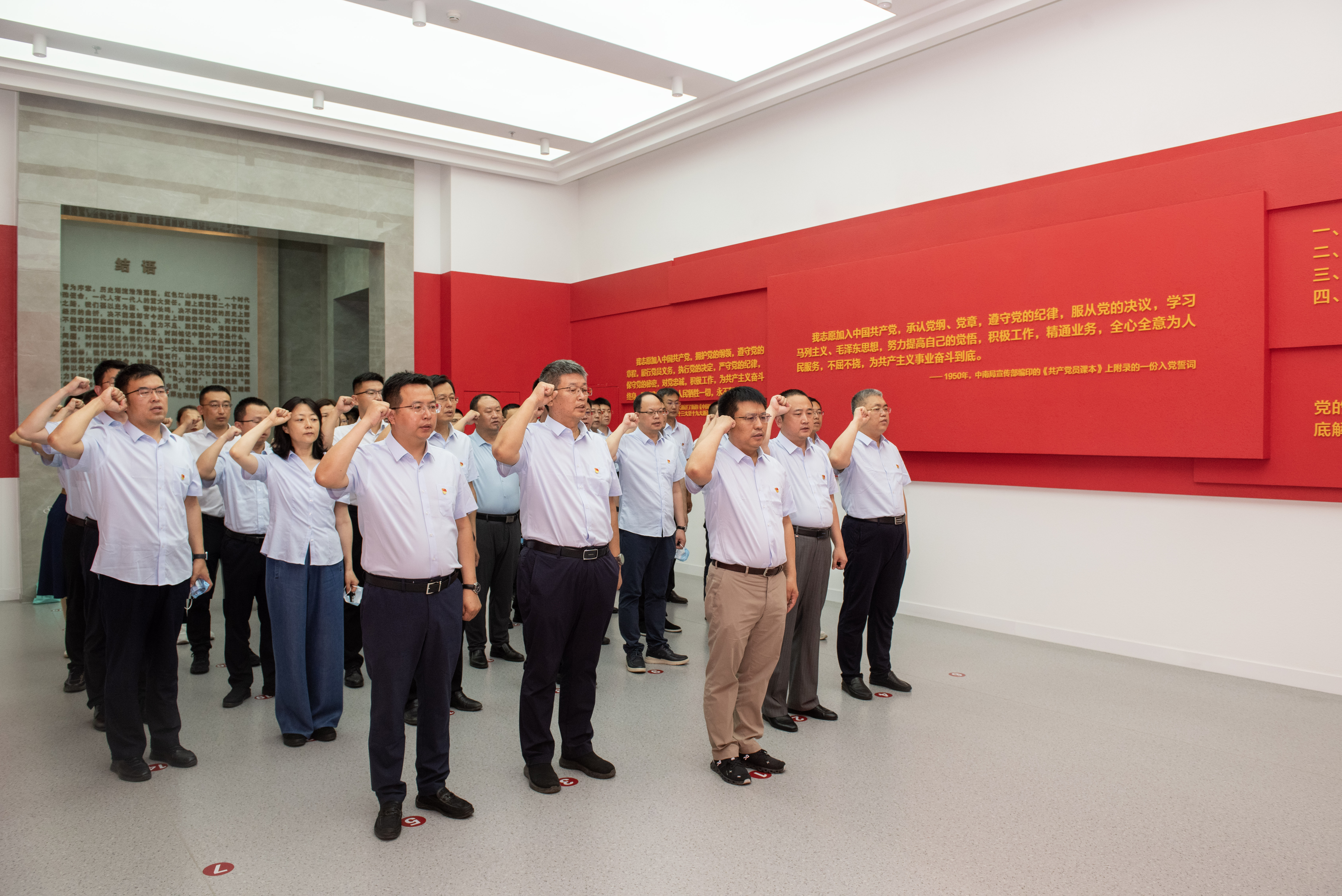 观摩结束后,参学人员面向党旗,握紧拳头,郑重宣誓,重温入党誓词,铭记初心使命。
